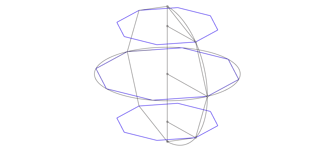 Planes parallel to xy (or lines parallel to x) containing each point allow us to determine the center of new 2n-gons whose radius will be the distance between these points and the previous.