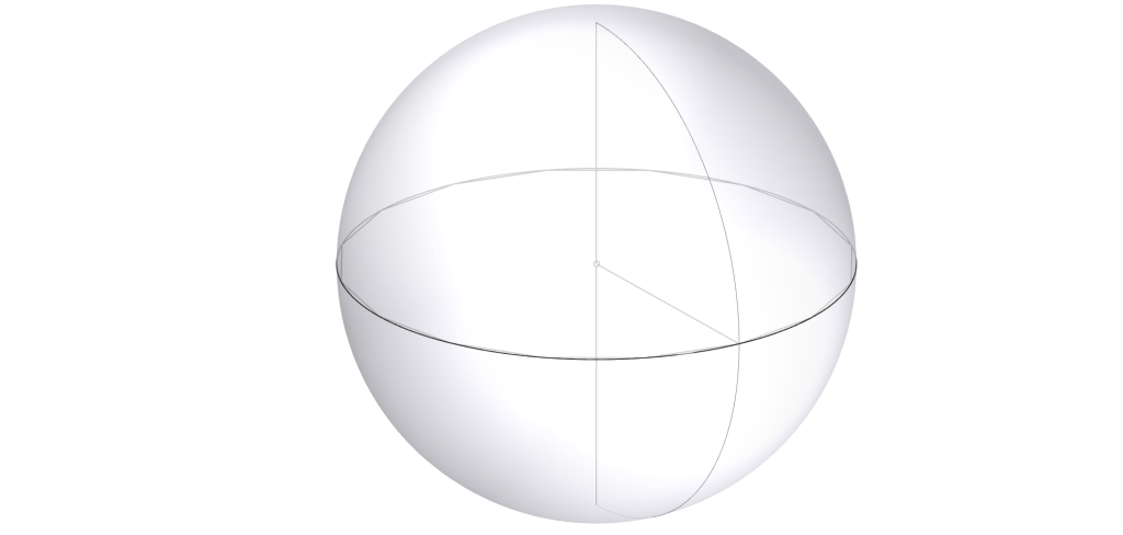 The image below shows the same sphere with a radius equal to the longest leg of the triangle. The great circle belonging to the triangle’s plane is tangent to the median, and thus, the polyhedron does not touch the lesser sphere at its surface.